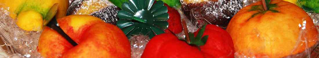 cioccolato fondente), la tradizionale e coloratissima frutta martorana, i pupi di zucchero (anticamente a  forma di bersagliere, paladino o bambola, adesso delle più svariate forme).